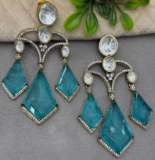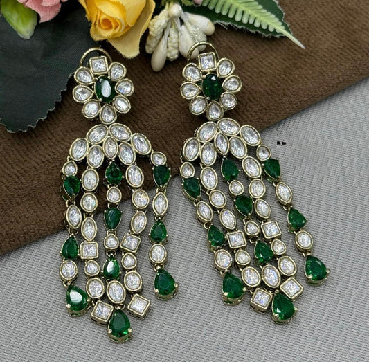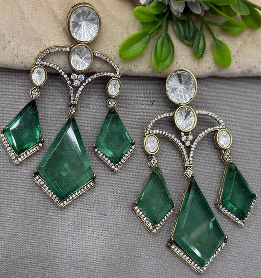 Three Layer Mossanite With Kemp Stones Earring in green for woman