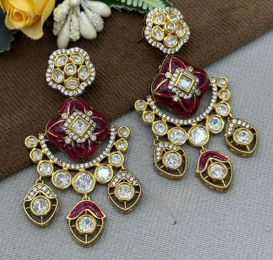 Meenakari With Kemp stone Earriing in red for woman