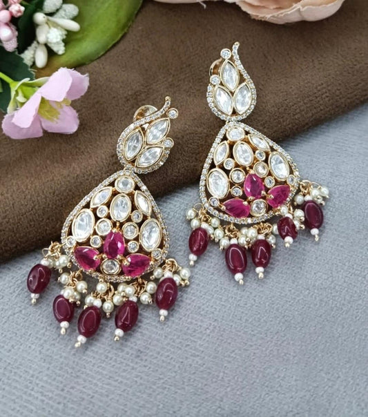 Long Beading Kundan Earring in red for woman