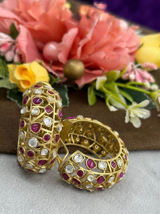 Braod Hoops With Mossanites in red for woman