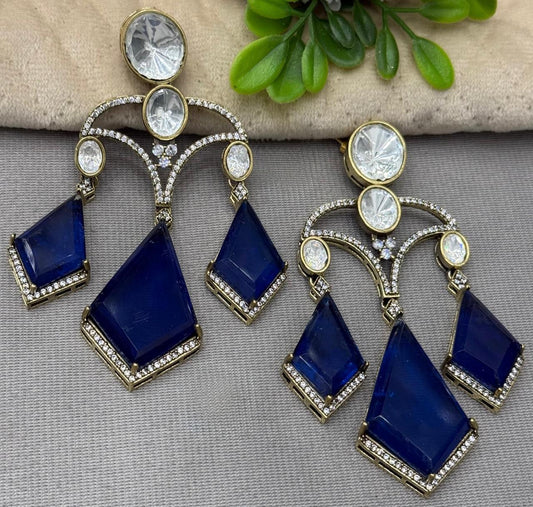 Long Earrings with Doublets In Mossanite in blue for woman
