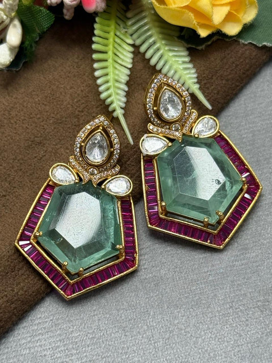 Doublet With Kundan Carving Earring In Mint For Women