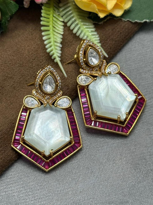 Carving Doublet Stone With Triangle Mossanite in Pink earring