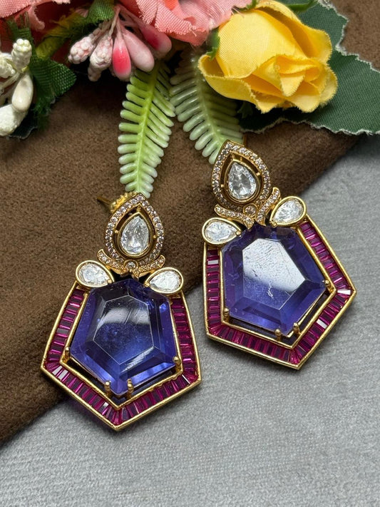 Carving Doublet Stone With Triangle Mossanite in Purple earring