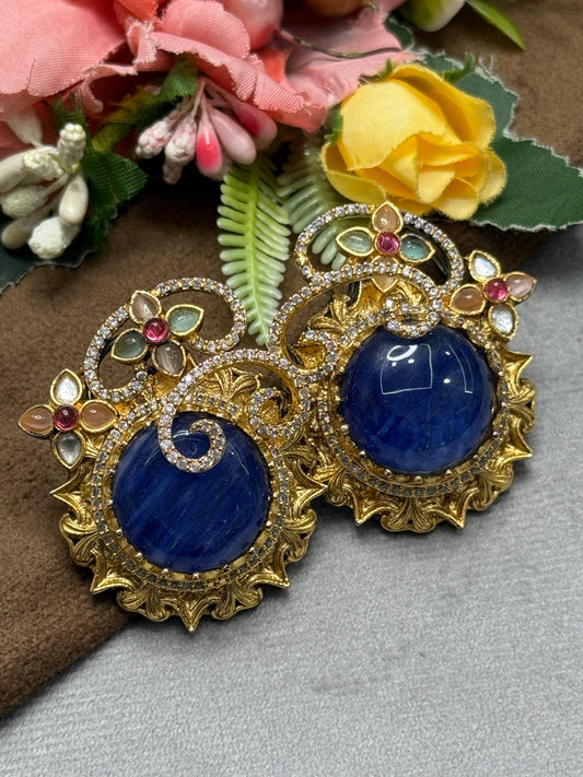 Round Oversized Studs In Sabya in blue For Women