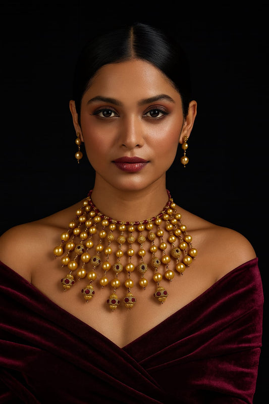 Elegant Multi-Layer Champagne Bead pearl mala for women