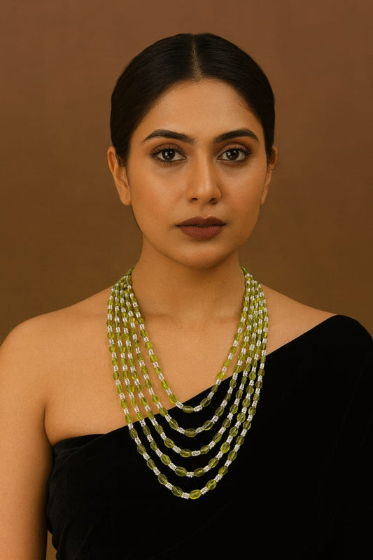 Elegant Green Transparent Beads Multi-Layer Crystal Beaded Mala