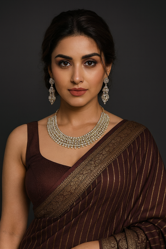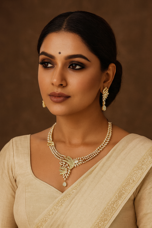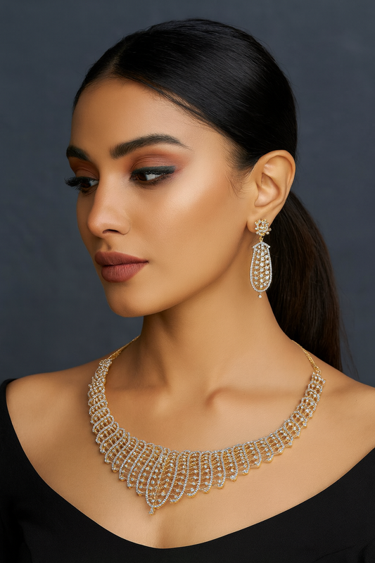 Designer Gold-Plated Necklace Set with Sparkling CZ Stones