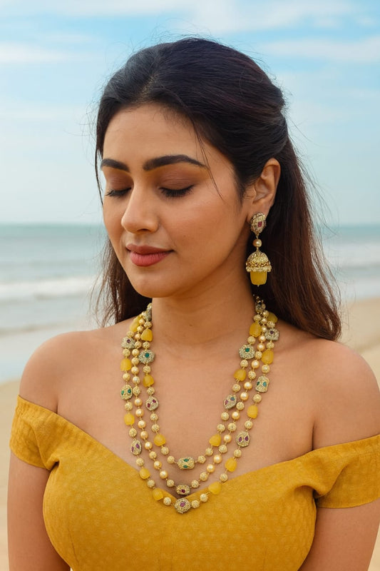 Royal Jaipuri Yellow and Multi colour Tumble Beaded Mala For Women
