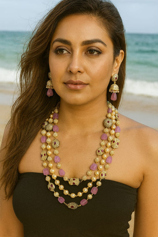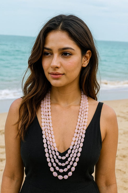 Elegant Handcrafted Multi-Layer Rose Quartz Bead Mala