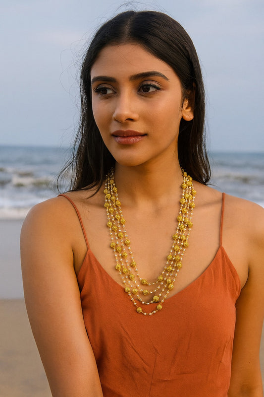 Ethnic Long Mala With Multi layer And Gold Beaded Ball For Women