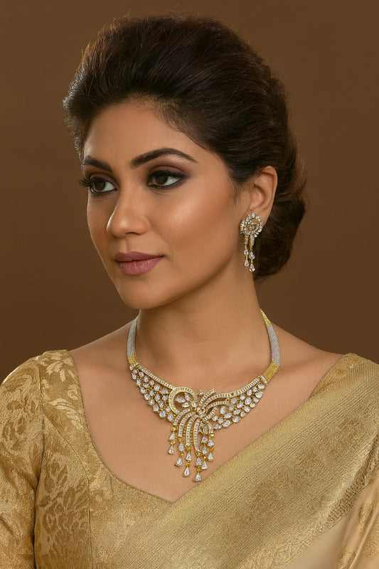 Statement Designer Necklace & Earrings Set with Cubic Zirconia