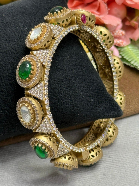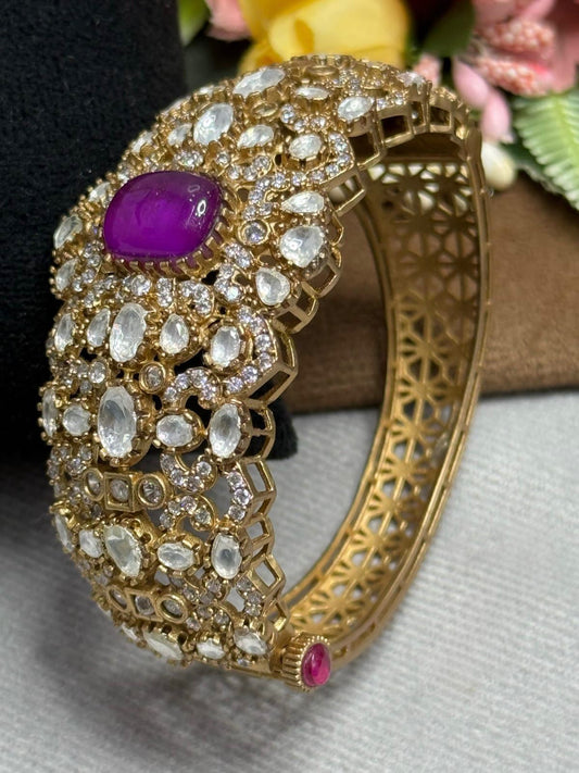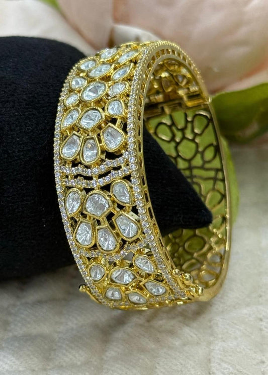 Paachi Kundan With Mossanites Broad Kada for woman