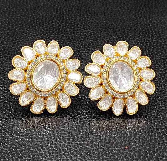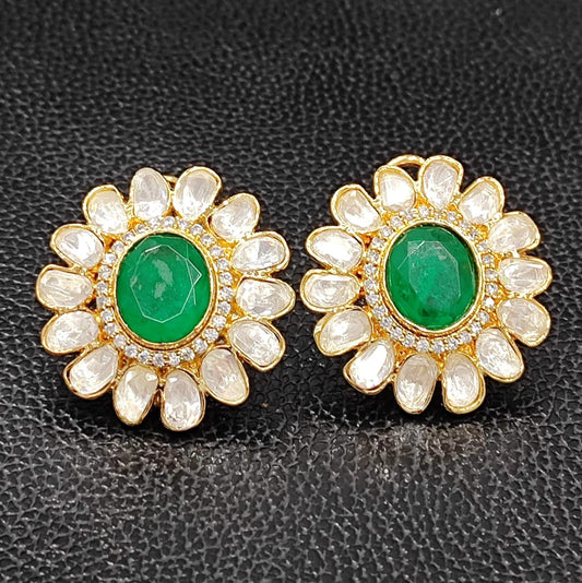 Uncut Polki With Side CZ Studs for woman