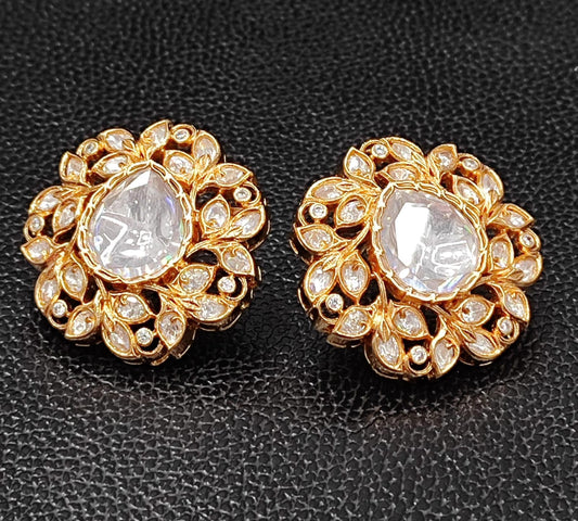 Leafy With Centre Polki Oversized Stud for woman