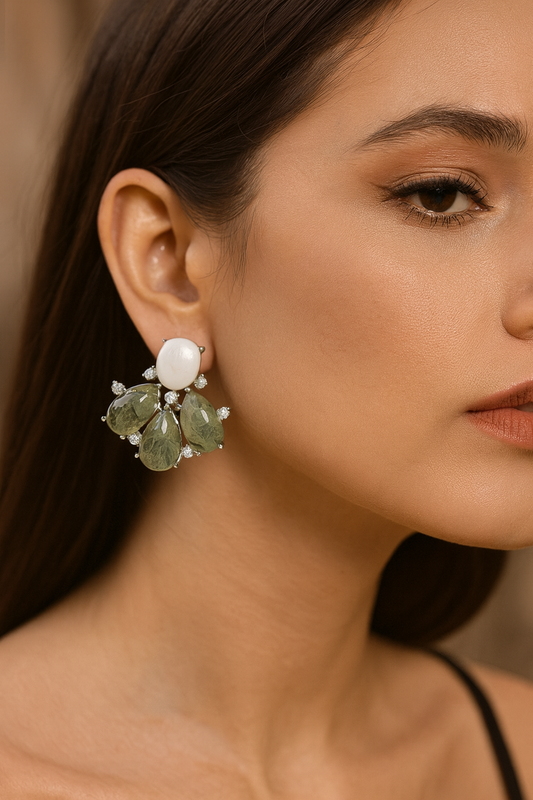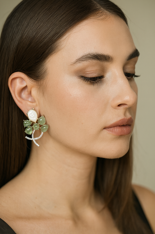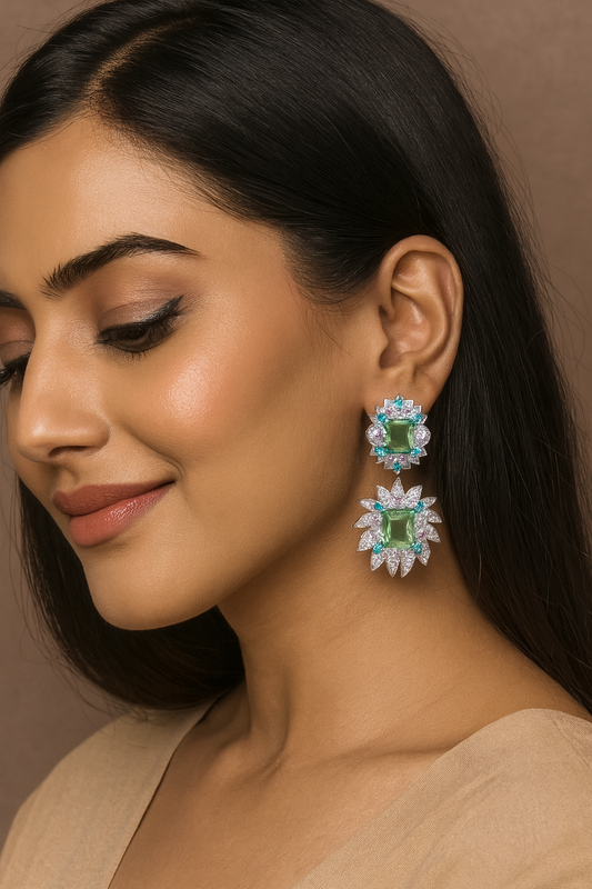 Unique Green Stone Floral Drop Earrings for Women