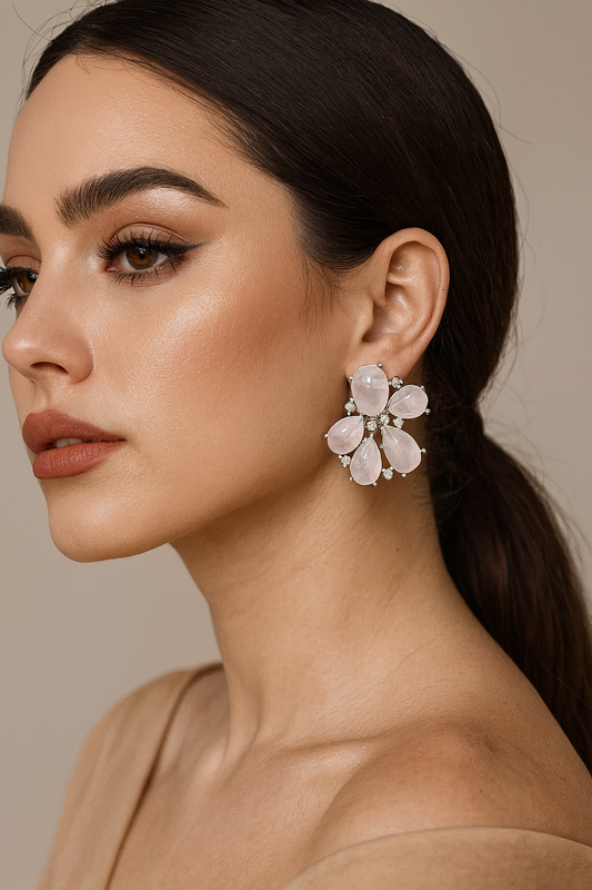 Amethyst & Rose Quartz Floral Earrings with CZ stone