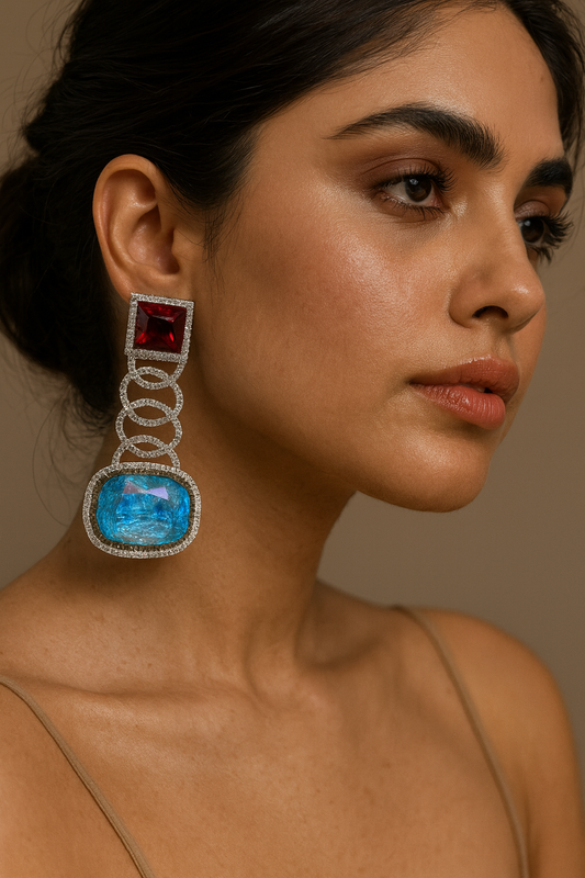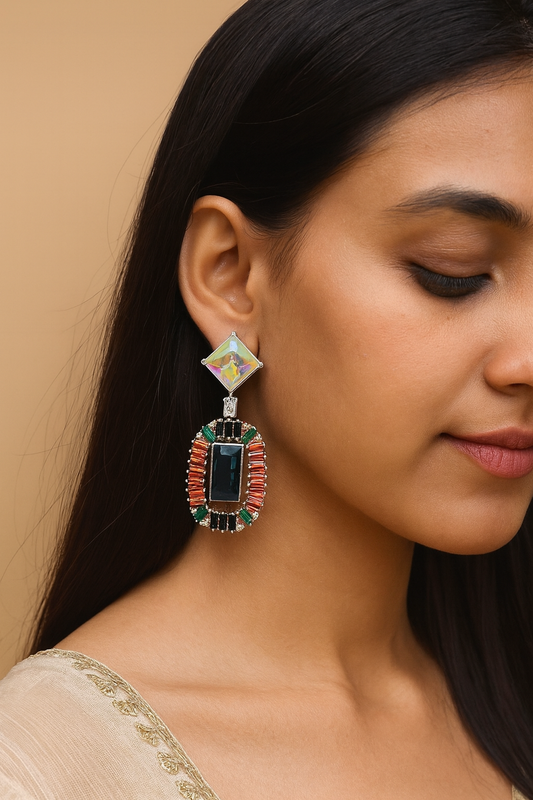 Colorful swarovski Statement Earrings with Blue Center Stone