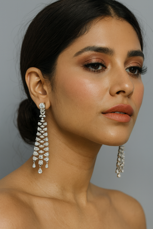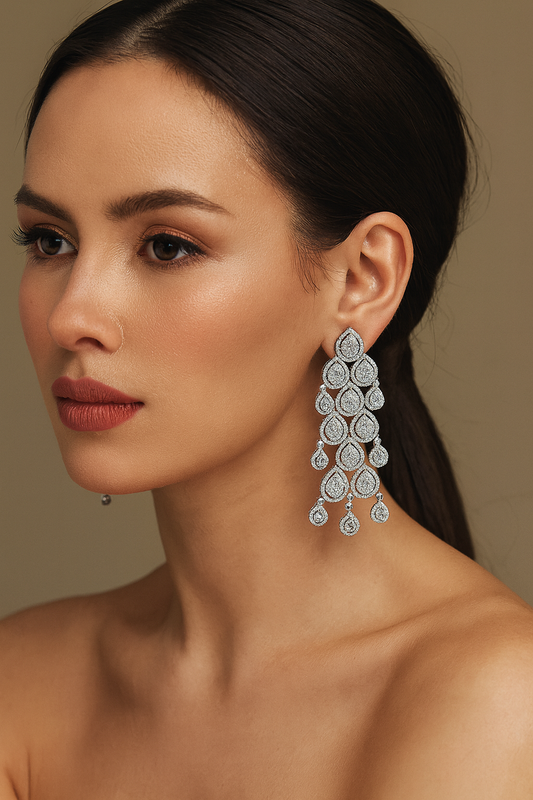 Elegant Silver CZ Chandelier Earrings for women