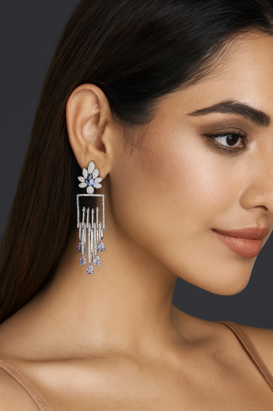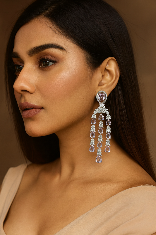 Designer Amethyst Drop Earrings with Sparkling Cubic Zirconia