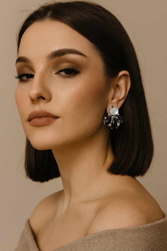 Handcrafted Amethyst & MOP Cluster Earrings with Sparkling CZ stone