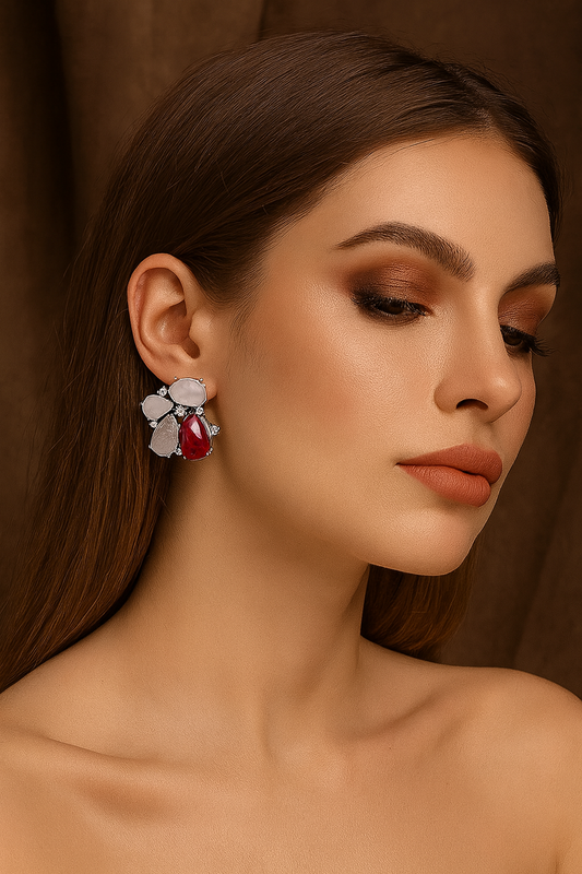 Handcrafted Amethyst & MOP Cluster red Earrings with Sparkling CZ stone