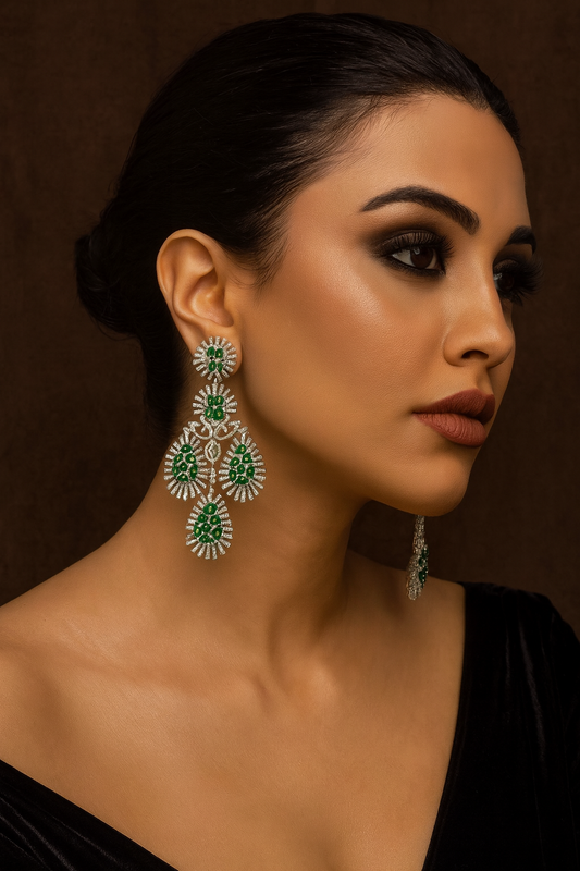 Emerald Green CZ Chandelier Earrings For women