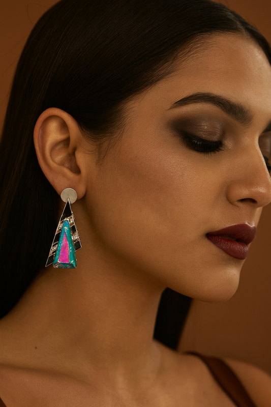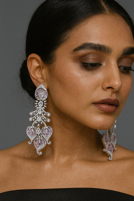 Unique Statement Earrings with Pink Stones and Sparkling Drops