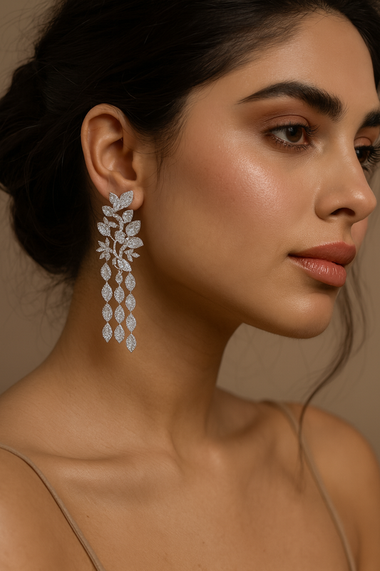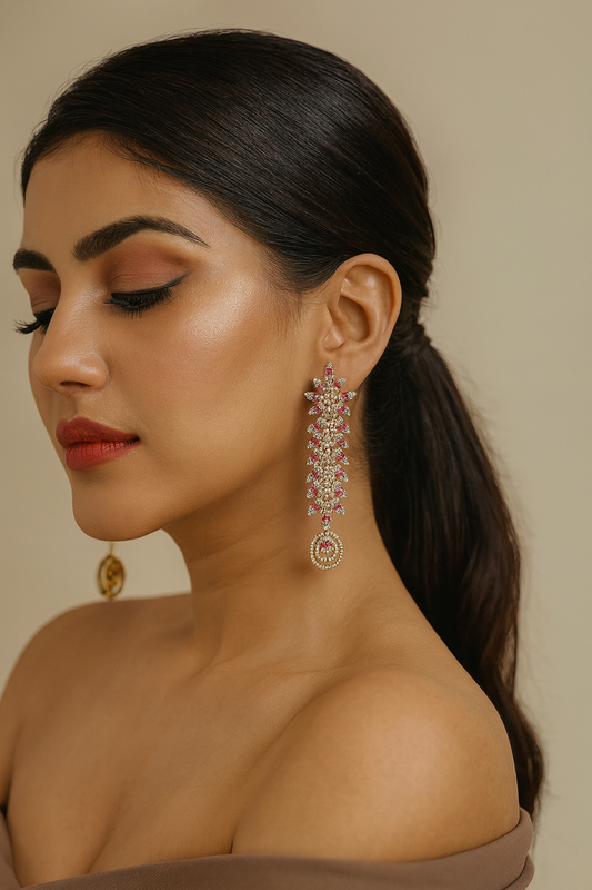 Antique Ruby & Diamond Long Earrings with silver polish And CZ Stone for women