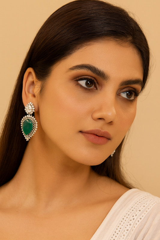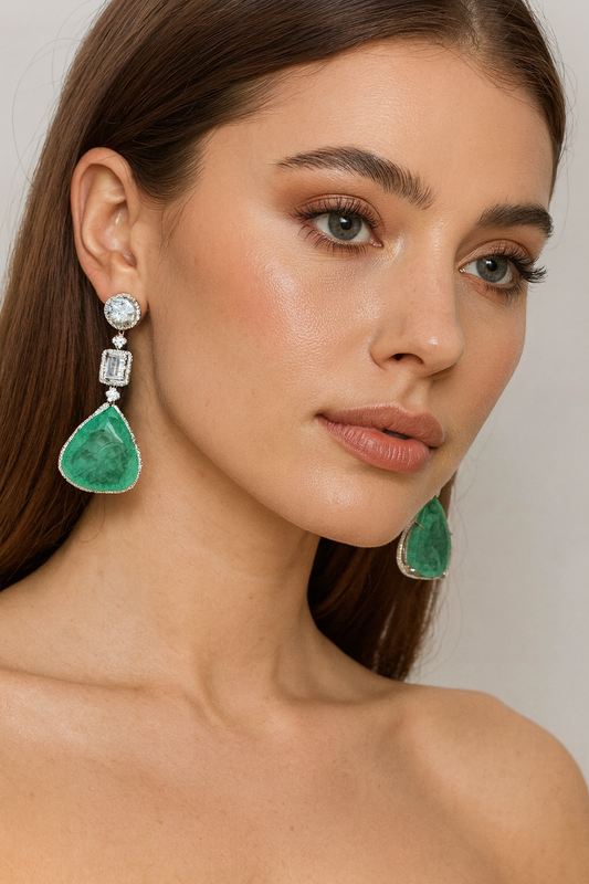 Elegant Emerald Green Drop Earrings with Cubic Zirconia Stone