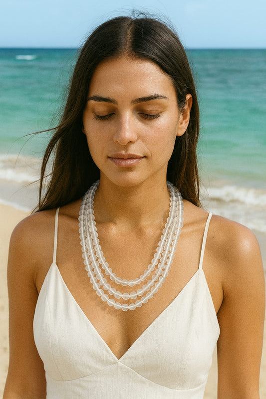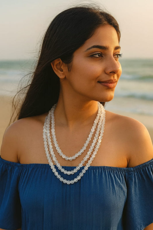 WHITE MISTICK ONYX BEADS THREE LAYER MALA FOR WOMEN