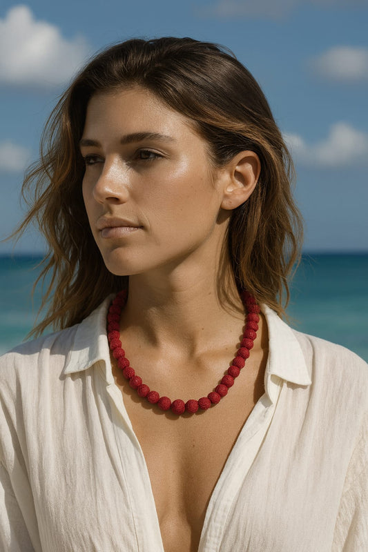 CERAMIC BALLS CARVING RED BEADS MALA FOR WOMEN