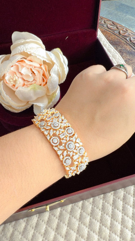BROAD GOLDEN POLISH BRACELET WITH CZ
