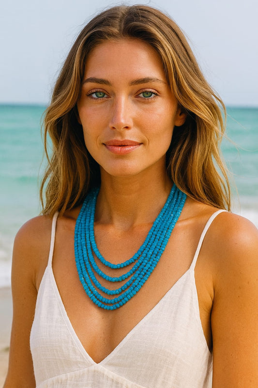 Antique Blue Five Layered Beaded Mala For Women and Girl