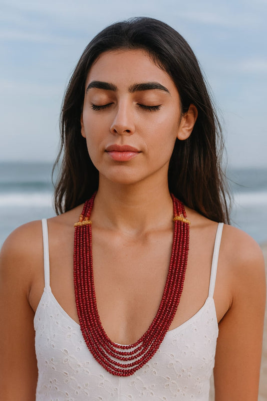 Antique Brown Oynx Beaded Five Layered Mala for women