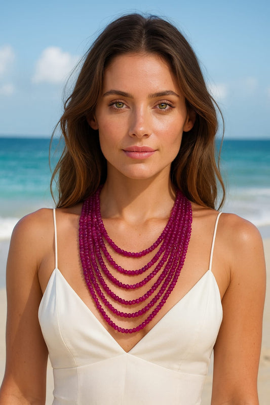 Antique Maroon Five Layered Beaded Mala For Women and Girl