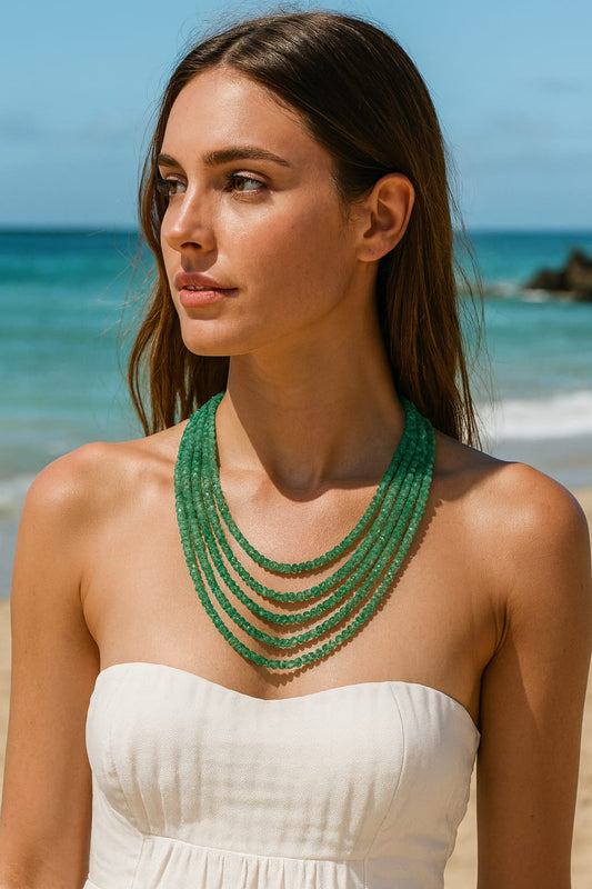 Antique Green Five Layered Onyx Beaded Mala For Women and Girl