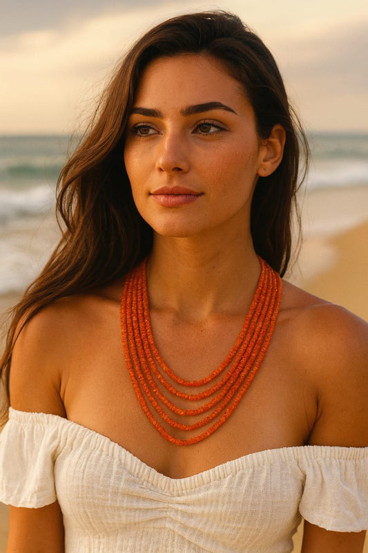 Antique Orange Five Layered Beaded Mala For Women and Girl