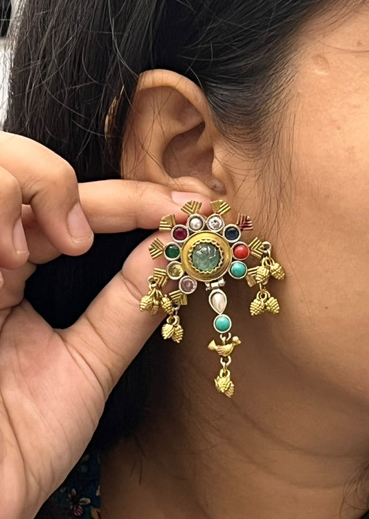 Antique Multicolor Gold Polish with mint Green Stone Earrings
