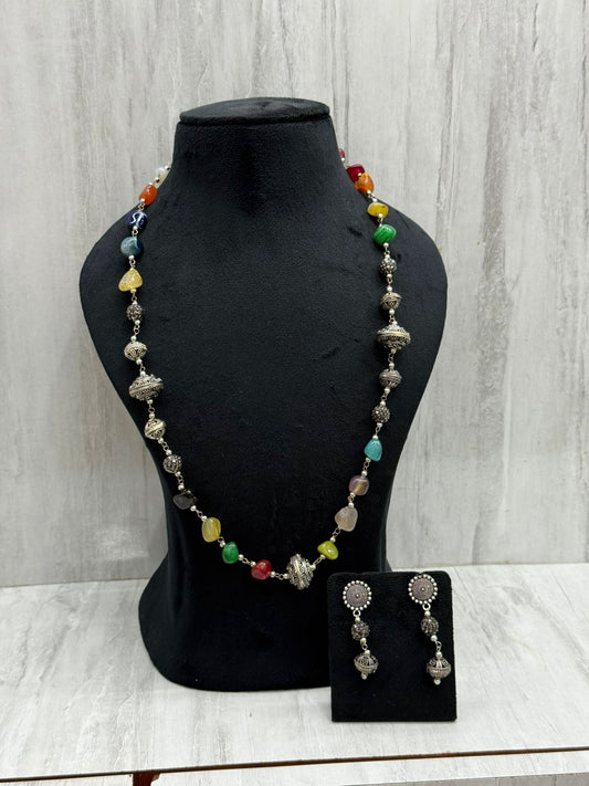 SINGLE LAYER MULTI COLOUR ONYX BEADS MALA FOR WOMEN