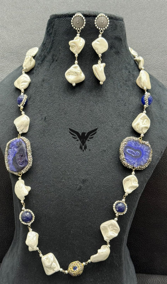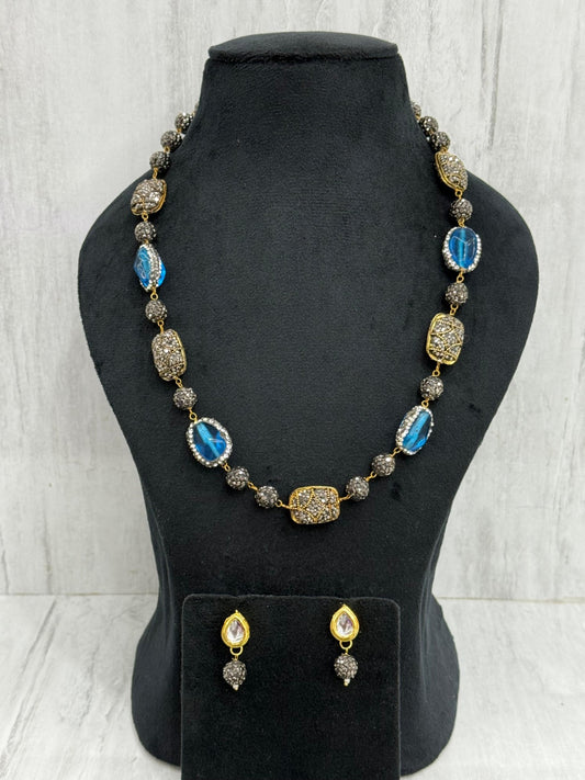 Beautiful CZ Necklace With Long Earrings In Blue For Women