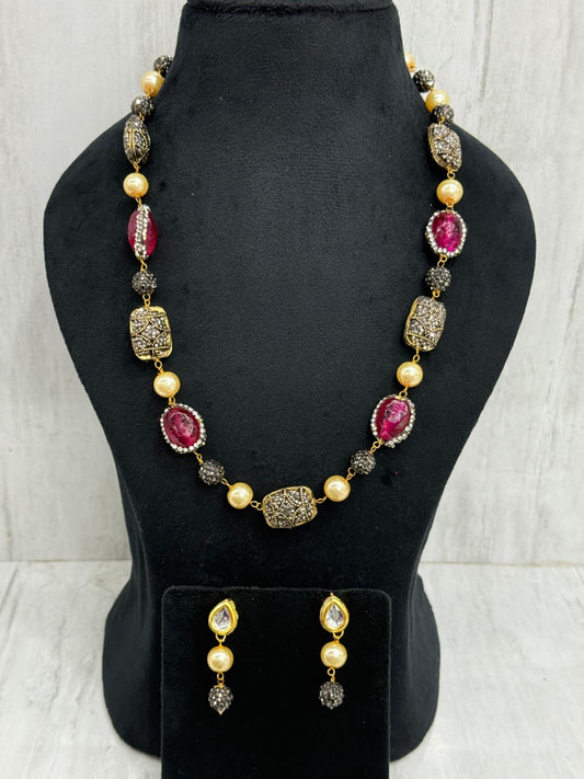 Beautiful CZ Necklace With Long Earrings In Ruby For Women