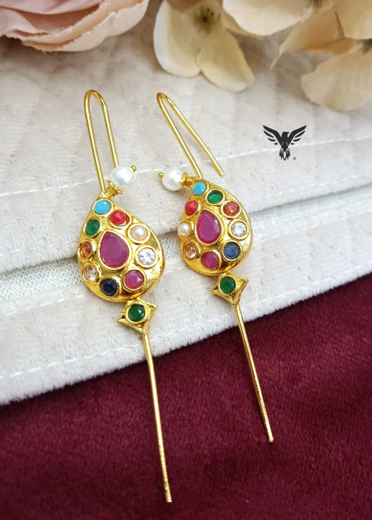 Paan navratan designer earcuff in pachi kundan