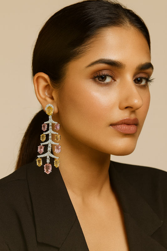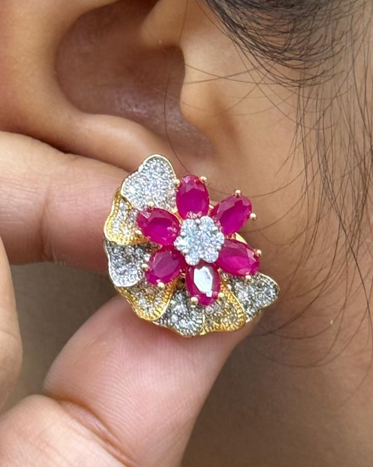PINK COLOUR ENTIC GOLDEN CZ STONE EARRING