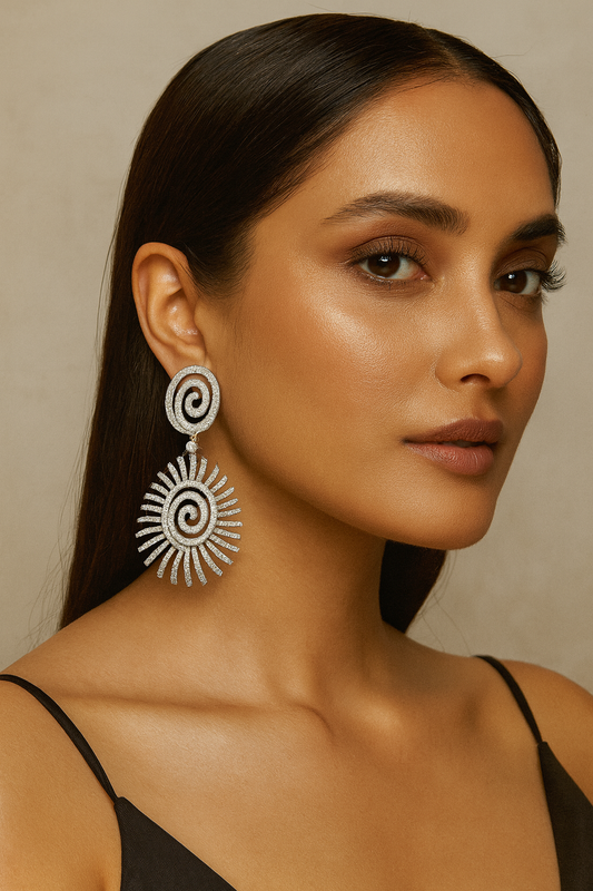 SILVER TONE ROUND CUBIC AD STONE EARRING