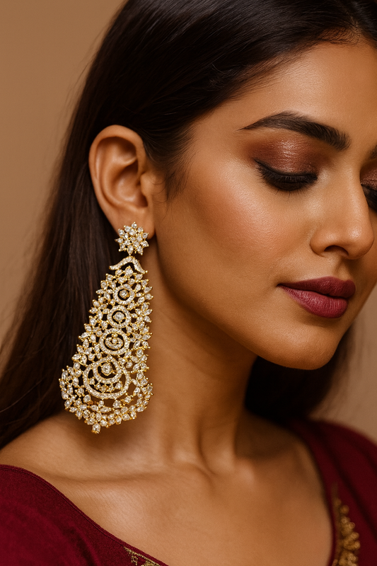 Sparkling Long Drop Earrings With Gold Polish for Women