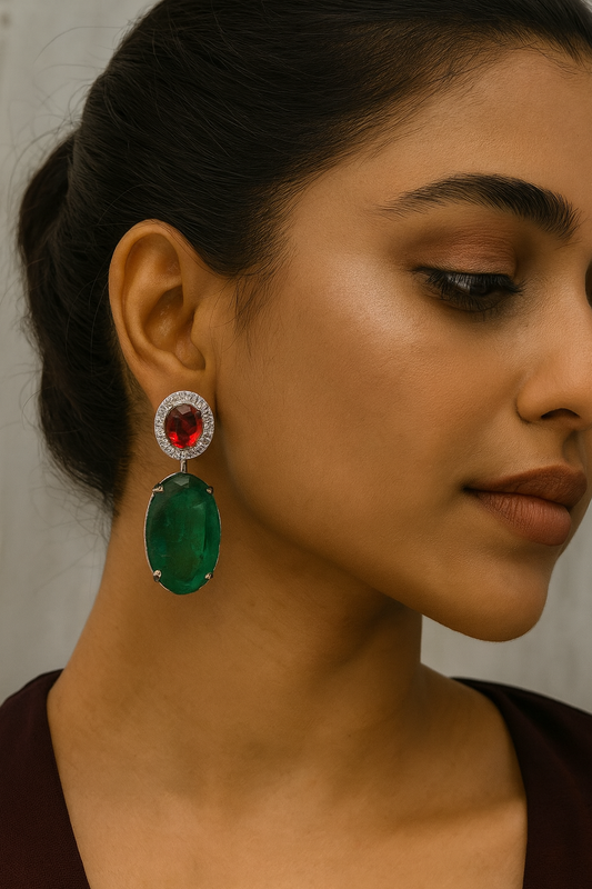 Statement Drop Earrings with Red Ruby & Green Emerald Doublet for women
