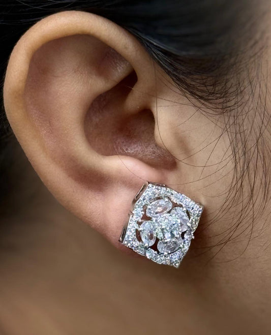 Square Solitaire Channel Settting Studs In cz with screw For Women