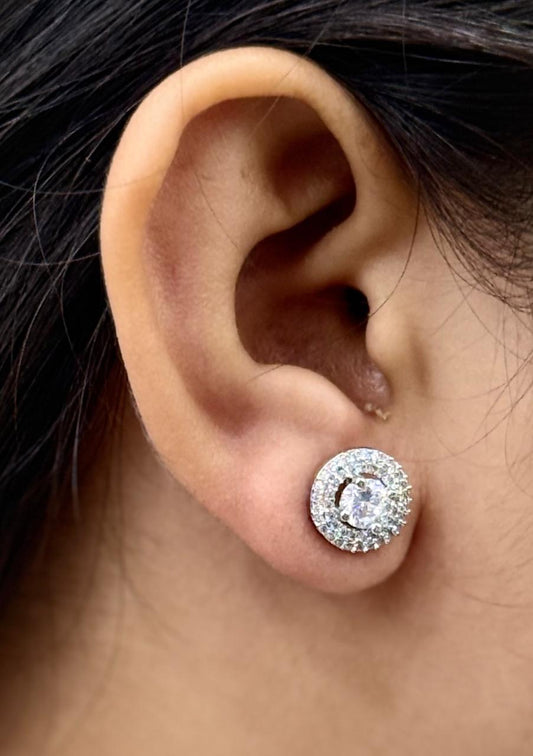 SILVER ROUND CLASSIC CZ STONE STUDS