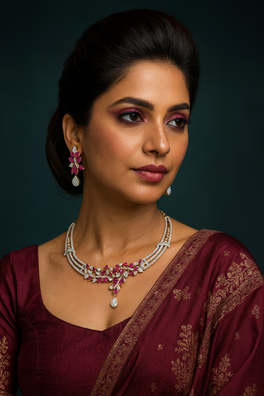 Designer Necklace & Earrings Set with Pink and White CZ Stones
